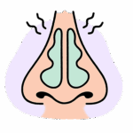 - Reduced sense of smell or blocked/ runny nose
