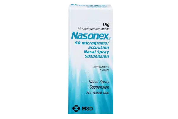 Nasonex nasal spray is available as prescription-only medicine. The active ingredient is mometasone furoate 50mcg which belongs to a group of medicines called steroids or corticosteroids. Mometasone nasal spray effectively reduces inflammation, swelling and irritation in your nose. This helps relieve itching, sneezing and your blocked or runny nose.